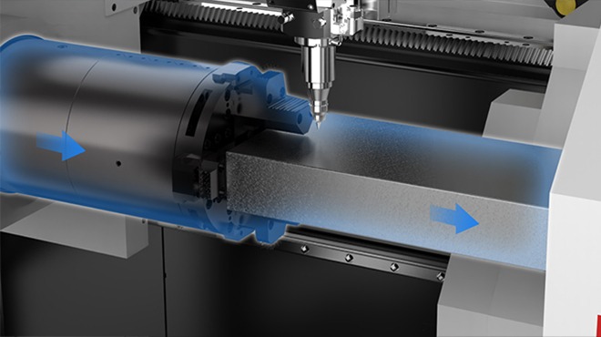 前卡盤可前移≤1400mm進行越位避讓,能有效防止長工件的甩動,減小切割尾料,部分機型最小尾料僅35mm,提升加工精度,降低成本