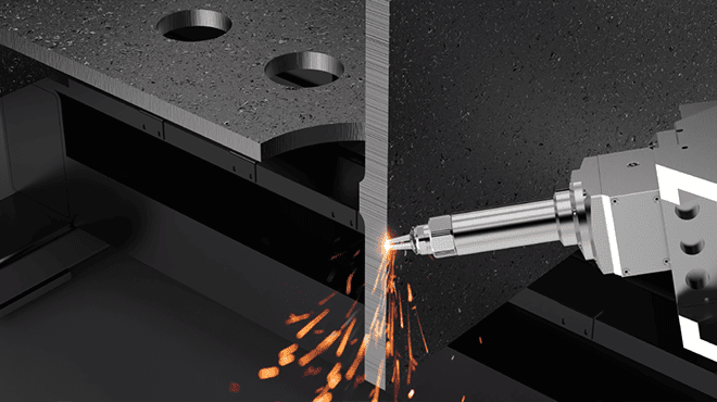 採用三維五軸型材切割專用的AB軸設計,能很好的進行轉動,A軸可±90旋轉,B軸可±90旋轉。固定於側面便於板材坡口加工。
